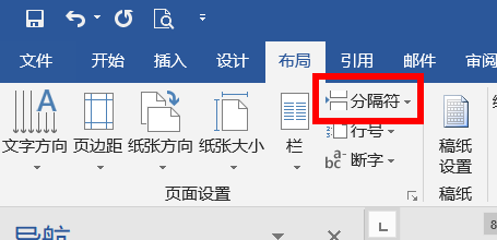 5、”页面布局“——”分隔符“的选项,点击”分隔符“右侧的小三角形图标;