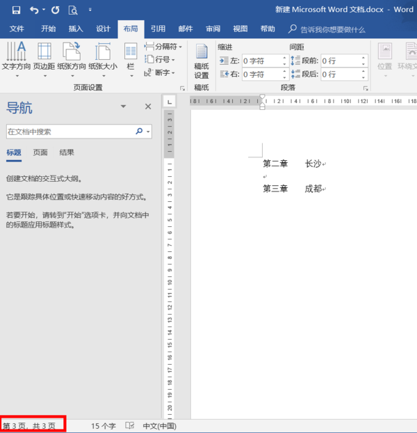 3、输好内容后,鼠标光标放置在”第二章“处;