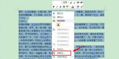 1、首先将microsoft word文档打开,右键选中需要设置的段落。