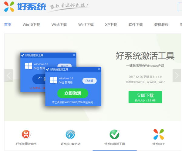 注释:好系统激活工具的大小仅为2.6M,所以不用担心流量的问题,即使适用手机也可以下载。