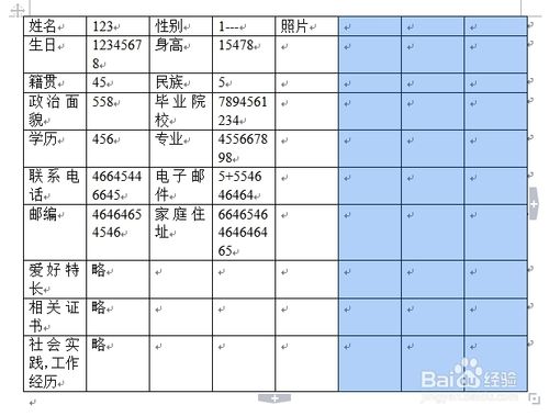 3填充表格。先不用排版,在表格里按照顺序填写就行。