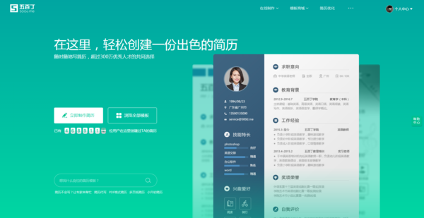 3. 点击【简历】栏目后可以看到系统自带的【简历】模板,根据选择找个适合自己的点击【免费使用】