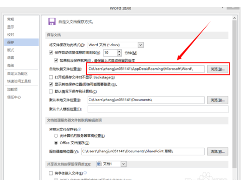 在右边对话框列出的内容中,找到“自动恢复文件位置”