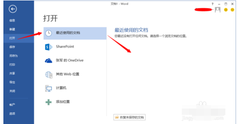 打开word (可以随便哪个word文档),点击左上角的文件菜单,在弹出的下拉列表中默认选中的就是打开选中,在右边可以看到最近使用的文档,可以找到在忘记没有保存的文件;