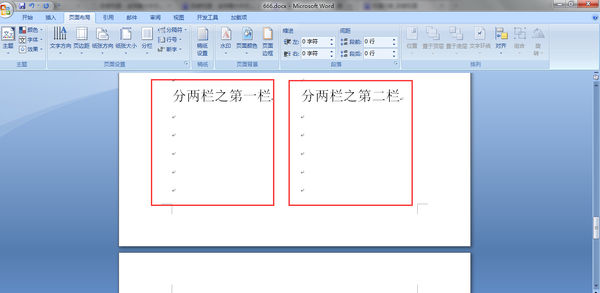 2、分两栏完成,完成分栏的效果图如下。