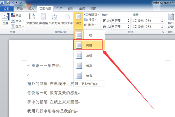 将Word文档分成左右两栏,需要在“页面布局”中设置称两栏。
