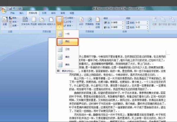 Word分为等宽两栏如何操作