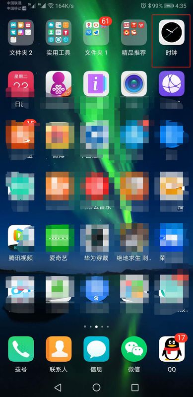 1、打开华为荣耀note10手机界面,在华为荣耀note10手机桌面上找到时钟图标,点击进入,如下图所示。
