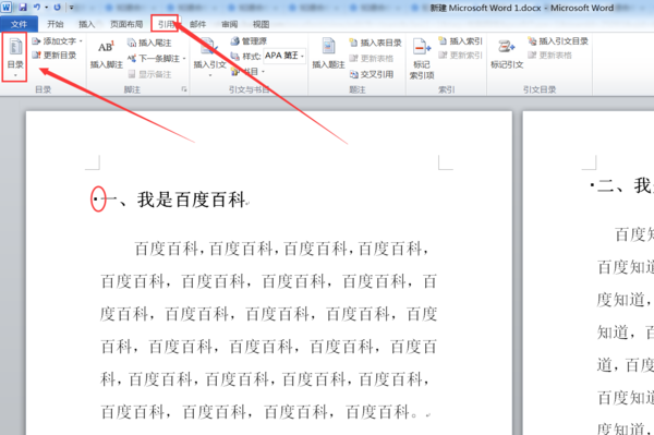 6、插入分页后,页码会有所变动需更新页码,在“引用”中找到并点击“更新目录”。