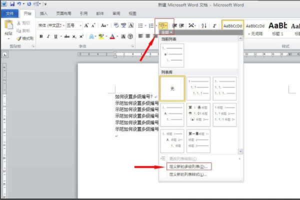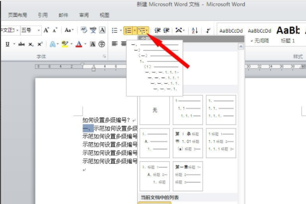 word2010中如何设置多级编号