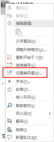 1、编号处右键,点击“设置编号值”
