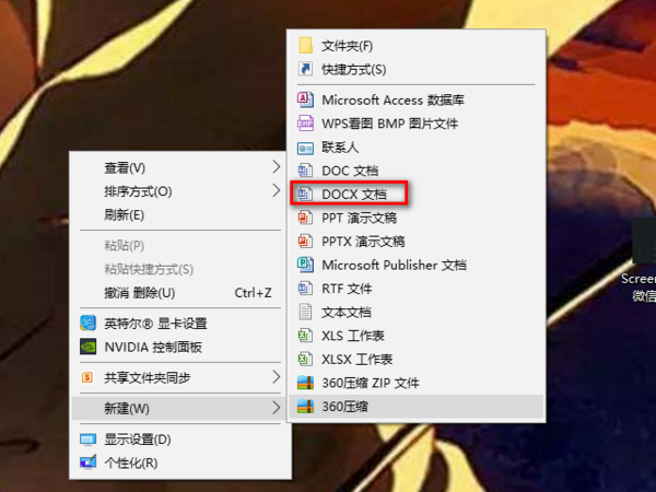 4.或者在新建页面中找到新建DOCX(两者都为我word文档,只是版本有所不同)文档选项,点击该选项进入下一页面,如下图所示。