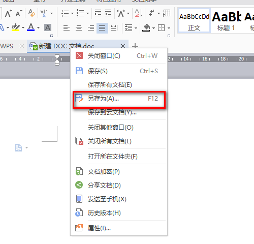 2.在功能页面中找到另存为选项,点击另存为选项进入另存为页面当中。