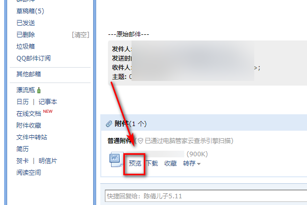 4、收到邮件后,在附件的旁边有【预览】链接,点开在线查看PDF文档。
