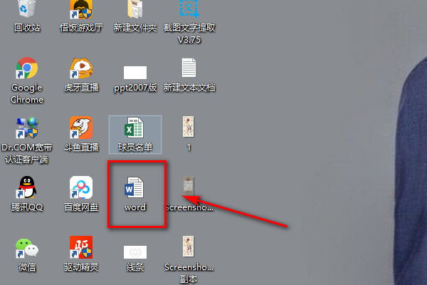 4、浏览桌面上的所有选项信息,找到需要用到的word文件这个选项,然后点击进入。