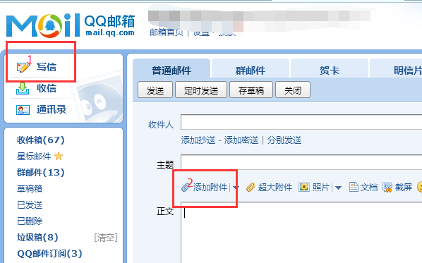 1、将编辑好的WORD保存,并打开邮箱(以QQ邮箱为例);之后点击写信,输入收件人邮箱地址,主题(可任意);再拖放文档到正文上方区域即可,如图。