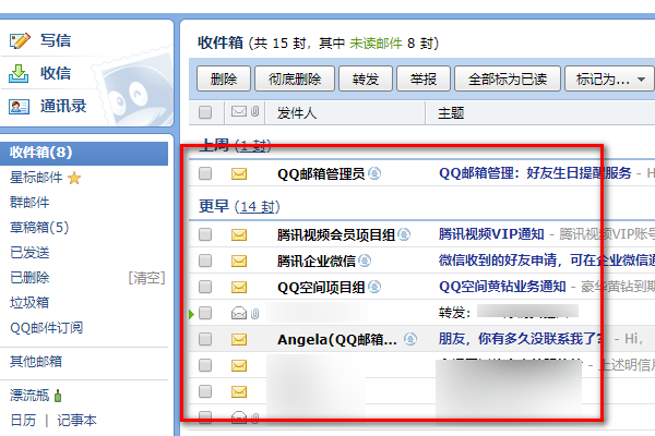 1、首先先登录好需要用到的QQ邮箱的主页面中,然后浏览邮箱中的所有内容信息,找到需要被转换成word文档的邮箱,然后点击进入。