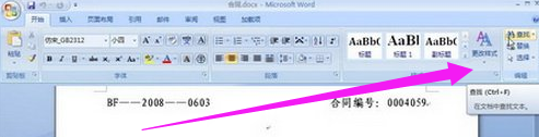 第1步,打开Word2007文档窗口,在“开始”功能区的“编辑”分组中单击“查找”按钮。