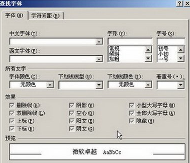 打开“查找字体”对话框,可以选择要查找的字体、字号、颜色等选项,并单击“确定”按钮。