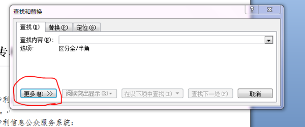 在打开的“查找和替换”对话框中单击“更多”按钮,以显示更多的查找选项。