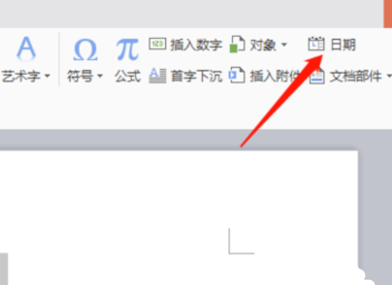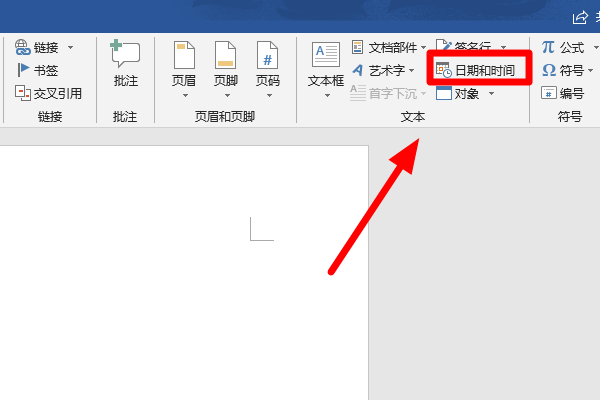 2、在打开的插入工具栏中点击“日期和时间”按钮打开日期和时间界面: