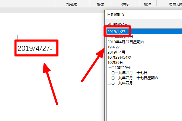 word 增加日期时间格式