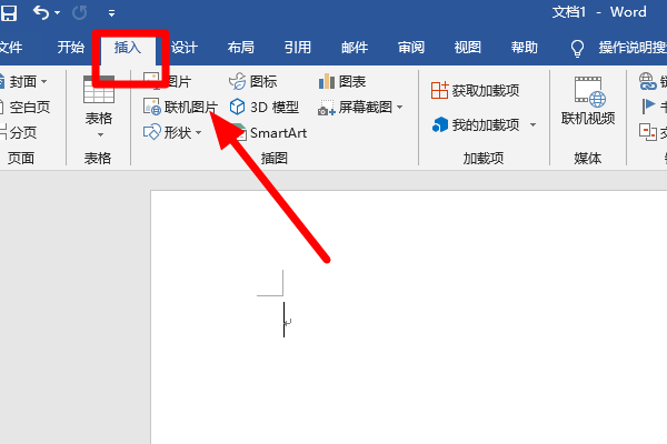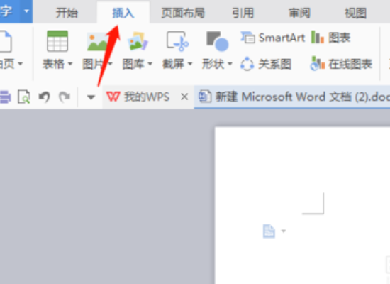 1、新建word文档,点击word顶部菜单栏上的“插入”按钮打开插入工具栏: