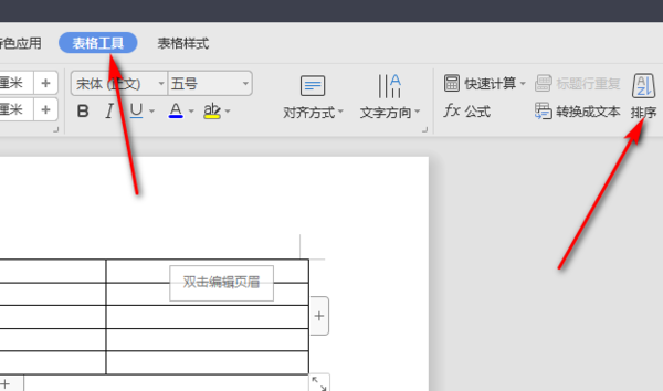 3、输好表格数据后,选中表格点击表格工具,然后选择表格工具中的排序。