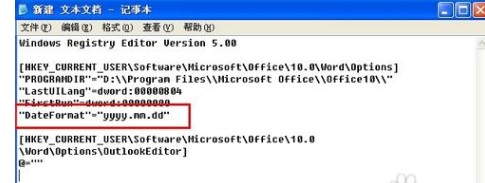 "DateFormat"="yyyy.mm.dd"[HKEY_CURRENT_USER\Software\Microsoft\Office\10.0\Word\Options\OutlookEditor]