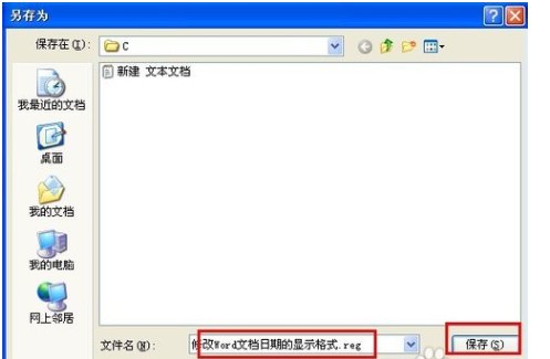 4、选择保存路径后输入文件名“修改Word文档日期的显示格式.reg”,保存。