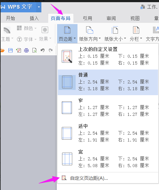 4.在弹出的菜单中可以选择自己需要的页边距;