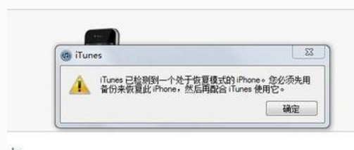 3、当看到屏幕黑屏时,请松开电源键,继续按住主屏 Home 键,直到电脑端的 iTunes 出现检测到一个处于恢复模式的 iPhone。