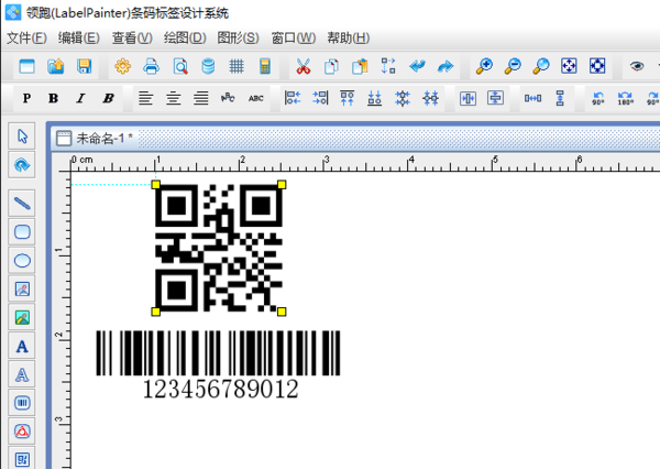4、 接着用鼠标在屏幕上拖动就会出现一个系统默认的条形码,如图所示: