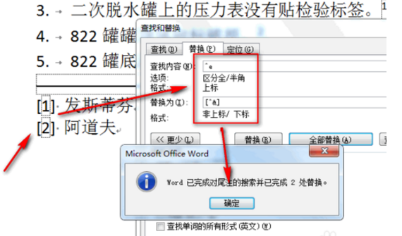 四、将光标插入正文区,将脚注区的上标保持为上标,并且加上 [ ],^e是特殊格式脚注,搜索^e就是搜索某个区域的所有脚注;^&是占位符,刚搜索到的是什么,现在替换的还是刚才搜索出的内容。