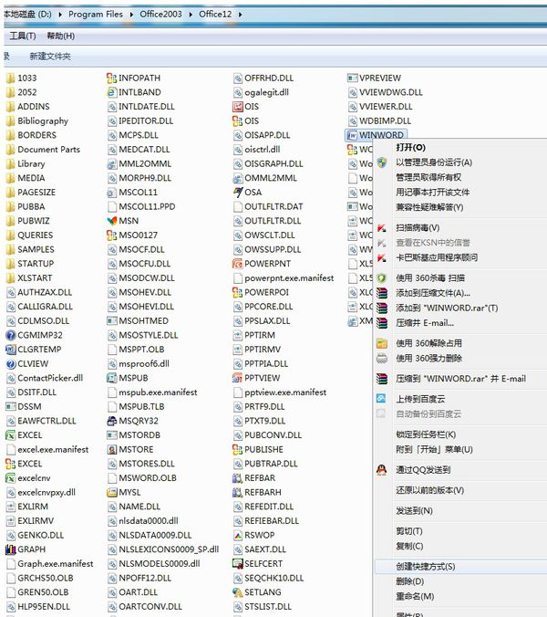 这里我的安装位置为D:\ProgramFiles\Office2003\Office12