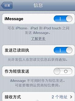 温馨提示:如果激活之后换了SIM卡,iMessage功能不会关闭,对方收到的短信将显示你的Apple ID。而iPad则只能使用邮箱帐号来作为本机地址。