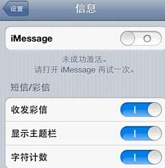 依次点击进入【设置】-【信息】然后就可以查看iMessage是否已经成功激活了。如果之前试过激活,但是没有成功激活iMessage的话,会在iMessage的下方显示出【未成功激活。请打开iMessage再试一次】的文字提醒。