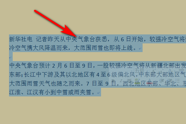 1.打开word文档,在word文档里面选中需要设置的段落。