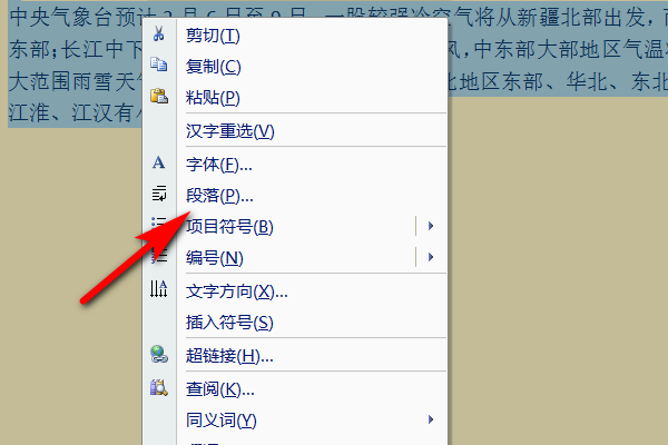 2.接着单击鼠标右键,点击段落进入。