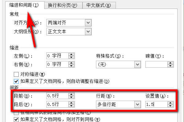 二、调整一段与另一段之间的间距: