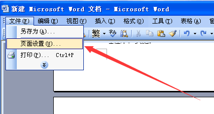 1.打开word文件,将光标定位在第二页的第一行最左端,然后点击“文件”中的“页面设置”。