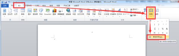 1、打开word2010,点击”插入“-”符号“,在下拉列表里点击”其他符号“;