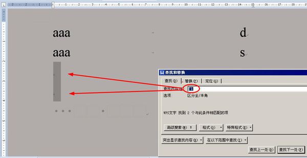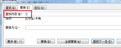 注意:替换空格和替换行的操作是一模一样的,替换只需在查找内容中输入空格符即可。
