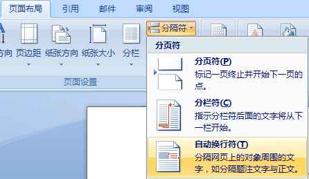 单击页面布局----分隔符----自动换行符即可,如图所示。
