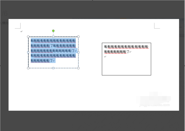 6、然后点击第二个文本框,将多余文字放置在第二个文本框