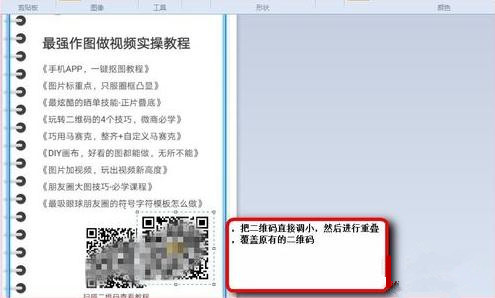 5、把大小全部调好以后任意放到合适的位置,把二维码加上去就可以了。