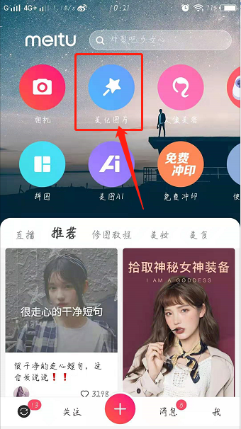 1、打开最新版本美图秀秀,点击首页的“美化图片”,并选择你要覆盖的二维码图片