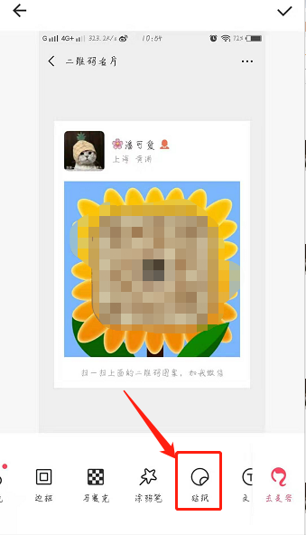 2、选择好你要覆盖的二维码图片后,进入美化页面,点击下方“贴纸”按钮