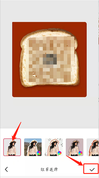 5、进入效果选择页面后,直接选择原始特效,并点击右下方“勾选”符号