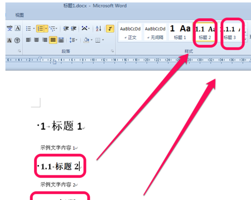 同理,我们逐级建立标题2、标题3等目录结构索引,如图所示。